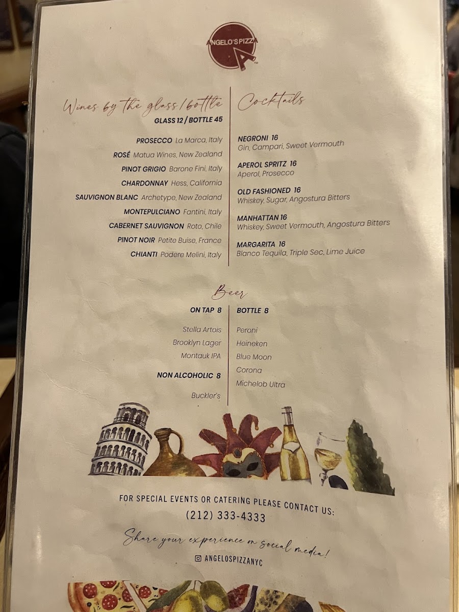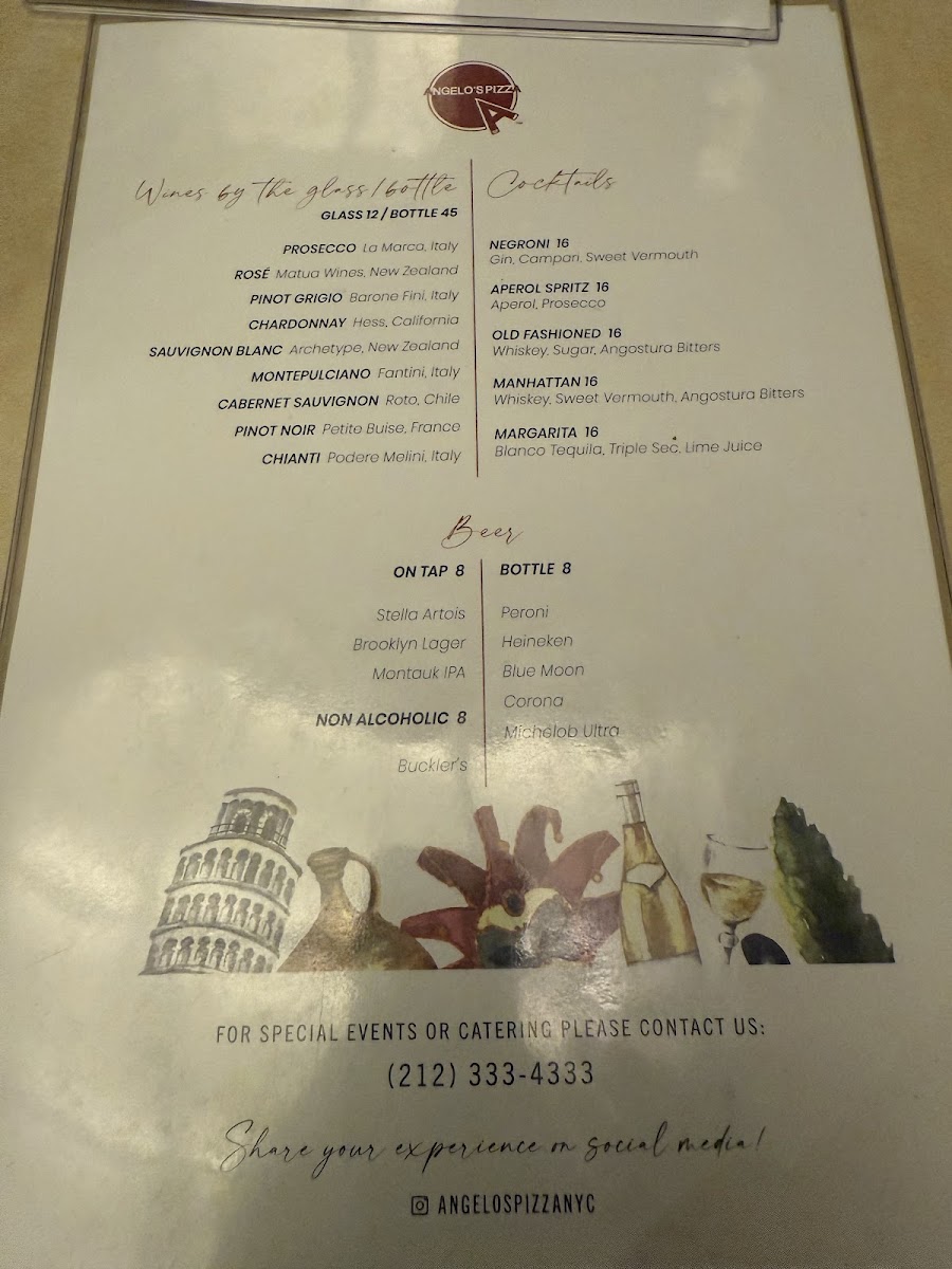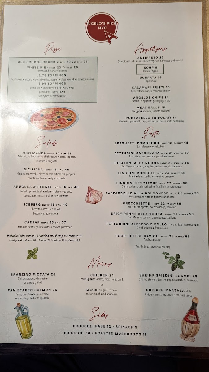 As you settle into the warm, inviting atmosphere of Angelo's—a space that's perfect for both intimate dinners and friendly gatherings—you'll appreciate the genuine New York vibe and attentive service. The staff are not only friendly but knowledgeable, eager to help you navigate the menu and recommend drink pairings to elevate your meal. Whether you're washing down your pizza with a refreshing Sparking Water ($4.00) or a classic soda, you’ll relish the attention to detail at every turn.